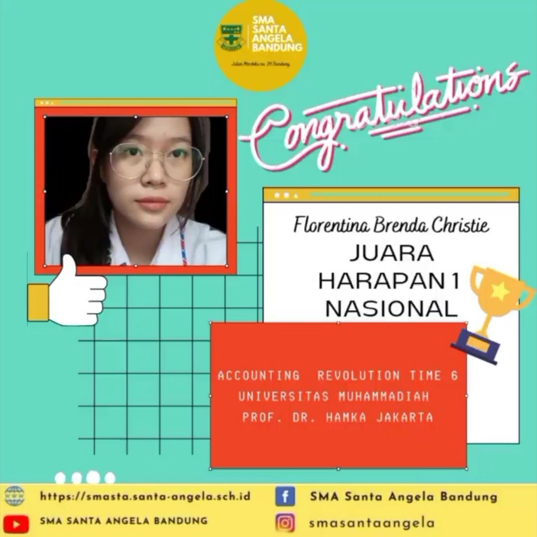 Selamat atas keberhasilan Florentina Brenda Christie yang telah meraih JUARA HARAPAN 1 TINGKAT NASIONAL dalam Kompetisi Accounting Revolution Time 6 yang diselenggarakan oleh Universitas Muhammadiah Prof. Dr. Hamka Jakarta.